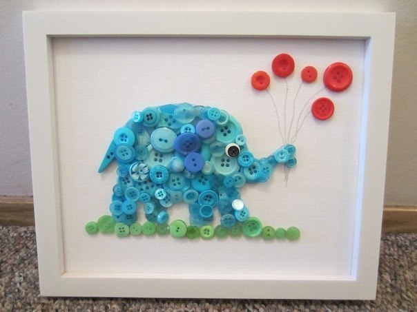Уникальную картину вы можете создать с помощью цветных пуговиц. С помощью нижеописанного способа вы можете сделать не только картину, но и поздравительную открытку. Здесь мы рассмотрим, как сделать такую необычную аппликацию на примере картины со слоником.