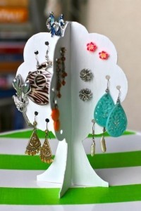 Если у вас много украшений и вы не знаете как их хранить, попробуйте разместить их на таком вот дереве. Так все украшения сразу будет видно и само по себе дерево может украсить комнату. Сюда можно повесить клипсы, серьги и гвоздики.
