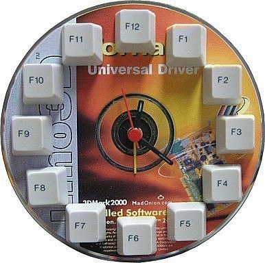 Кто бы мог подумать что клавиатура идеально подходит для изготовления часов — ведь на ней 12 функциональных клавиш! Эта поделка обойдётся вам без денежных трат, т.к. всё что нужно — это старые компакт-диск, клавиатура и кварцевые часы.