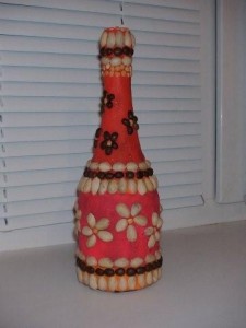 Бутылка-ваза 14.11.2009Поделки из пластилина, Поделки из природных материаловбутылка, вазаMeri Любая емкость, подходящей формы обмазывается пластилином. Затем украшаем всем, что под руку попадется – зернами кофе, горохом, рисом, скорлупой от фисташек и т.д.