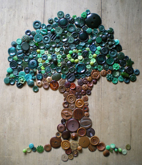 Картины-аппликации из пуговиц разнообрасны и идеи для таких картин нескончаемы. Очередное тому доказательство — дерево из пуговиц.