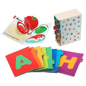 Выскакивающий алфавит – это весёлая книга с трёхмерными фокусами и картинками для изучения английского алфавита. Каждая буква алфавита навевает маленьким детям знакомый мотив. 26 карточек от A до Z могут быть сложены в специальную коробку.