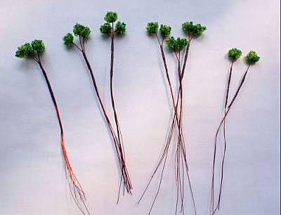 2. Из сделанных пучков соедините маленькие веточки по 1-2-3-4-5 пучков и обмотайте их флористической лентой.