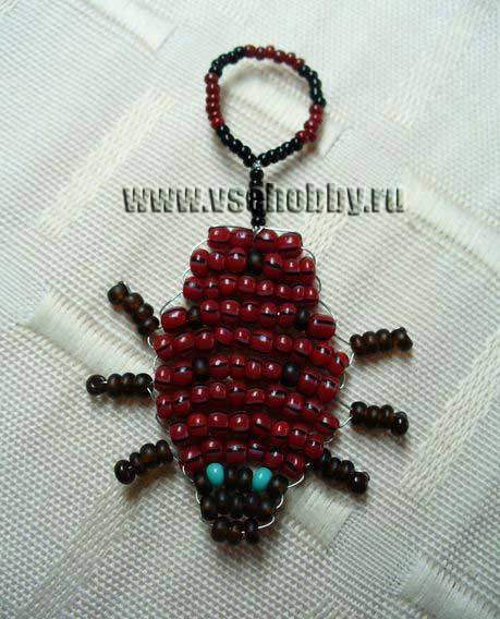 С каждого бока божьей коровки сделайте по последней лапке из 4 коричневых бисерин.