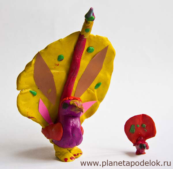 Павлин и павлинёнок 16.05.2010Поделки из пластилинапавлинmotor Поделиться... Перья павлина на хвосте сделаны из цветной бумаги.