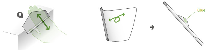 2. Вал B склеивается очень просто. Вырежьте его и прокатайте об край стола, чтобы бумага изогнулась. Скрутите заготовку в трубочку диаметром около 5 мм. Краешек заготовке приклейте к трубочке.