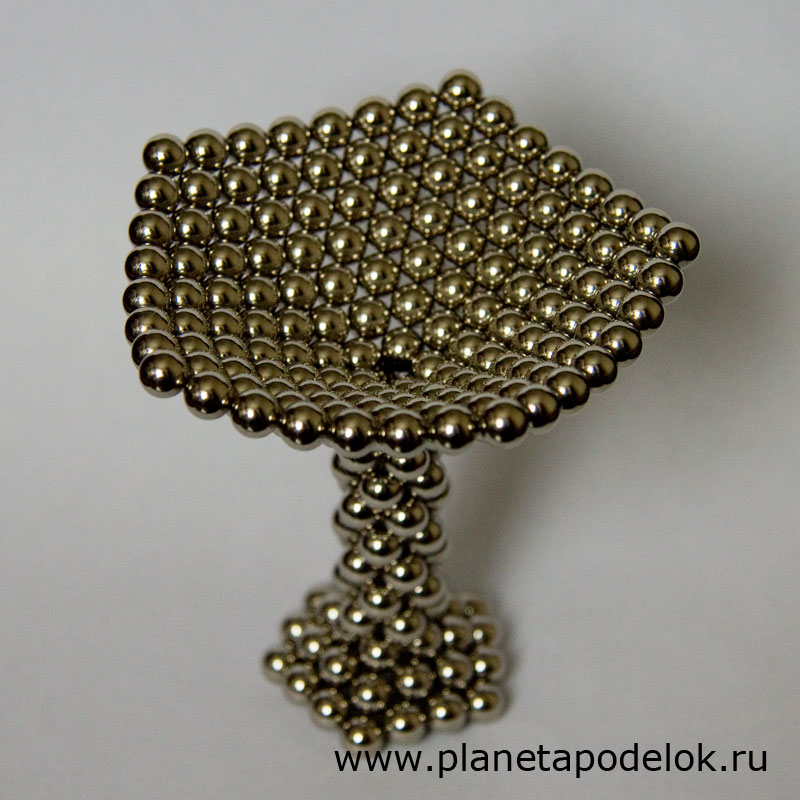 Ножка-трубка делается тоже из цепочки шариков, только, чтобы полярность не мешала, для каждого кольца, из которого будет изготовлена ножка, цепочка закручивается то против, то по часовой стрелке. Так ряд за рядом изготавливается ножка нужной длины.