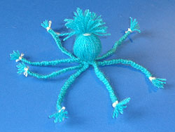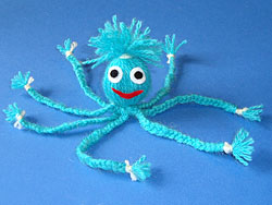 11. Приклейте глаза и рот к голове осьминога с помощью клея для ткани. Сделайте ему причёску и осьминог готов!