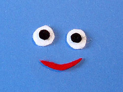 10. Вырежьте из чёрного и белого фетра кружочки для глаз и из красного фетра дугу для рта.