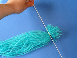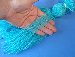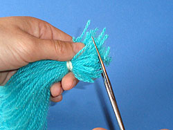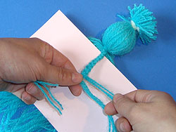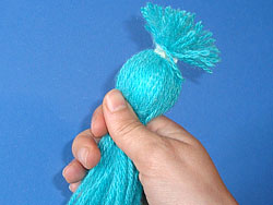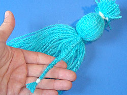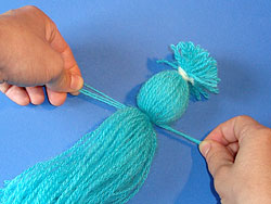 5. Свяжите нитки под ватным шариком как можно туже ниткой такого же цвета.
