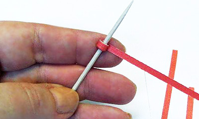 6. Настало время заполнить пустое пространство внутри сердечек. Сворачивайте ленточку из розовой бумаги вокруг зубочистки пока не достигните нужного диаметра.