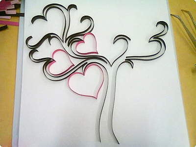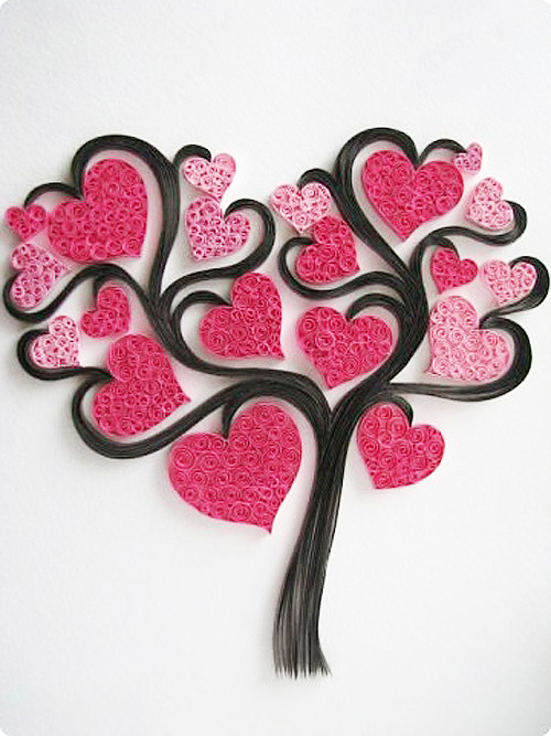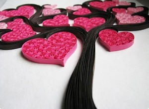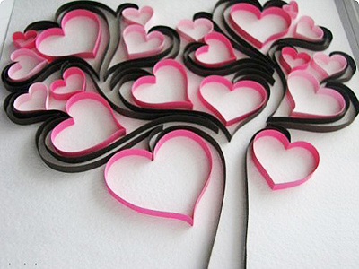 Давайте сделаем дерево в технике квиллинг, где листья — это огромные сердца розового цвета. Такое дерево можно будет подарить человеку, к которому вы хотите выразить свою любовь.