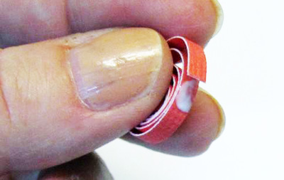 7. Обрежьте лишнее и приклейте кончик ленты к получившейся спирали.