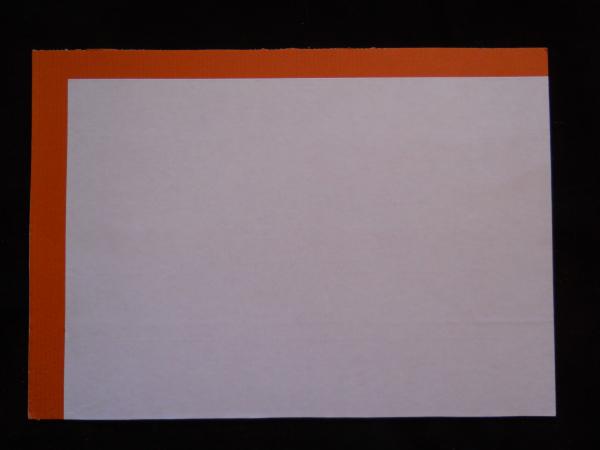 Сначала подготовим основу для открытки. На картон с внутренней стороны приклейте самоклеящуюся белую бумагу, отступив с двух сторон от края на ширину декоративной ленты.