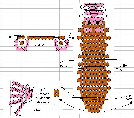 Для плетения обезьяны возьмите проволоку длиной 1,5 м. Не забудьте для носа взять бисерину больше остальных. Начните с носа обезьяны. Для ушей, надо добавить две проволочки. Не забудьте также добавить проволочки (по 40 см.) для рук и ног обезьяны. В конце не обрезайте проволочку, она понадобится для плетения ног.