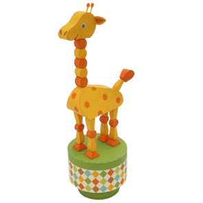 Нажмите на подставку, чтобы жираф обмяк и упал. Отпустите подставку, чтобы он снова встал.